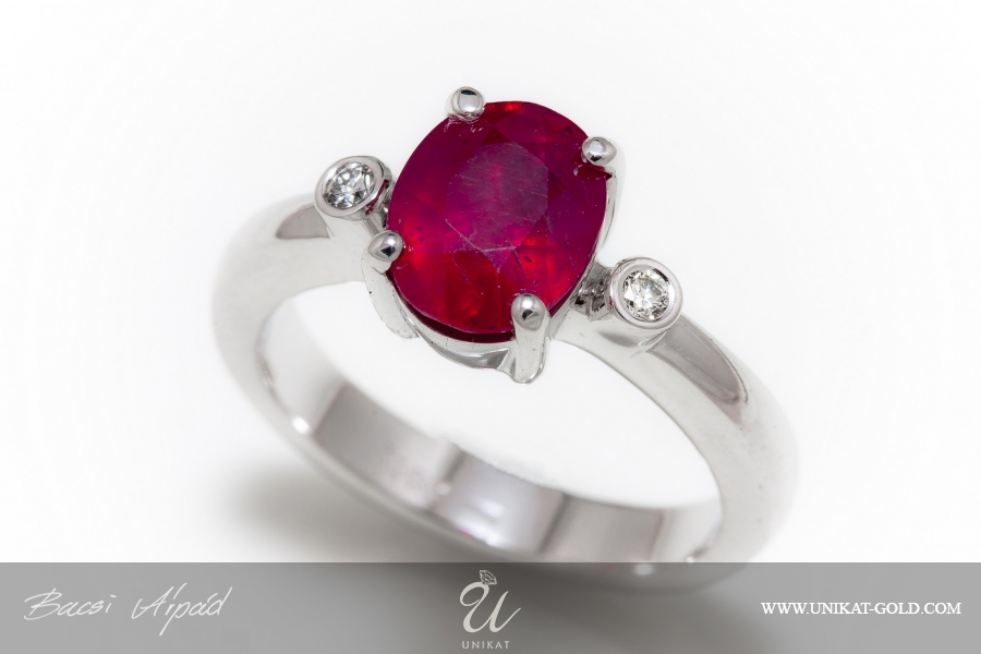 Prsten od belog zlata sa rubinom i dijamantima