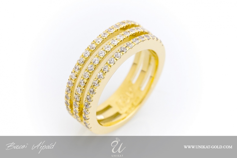 Zlatni prsten sa kamenjem u tri reda